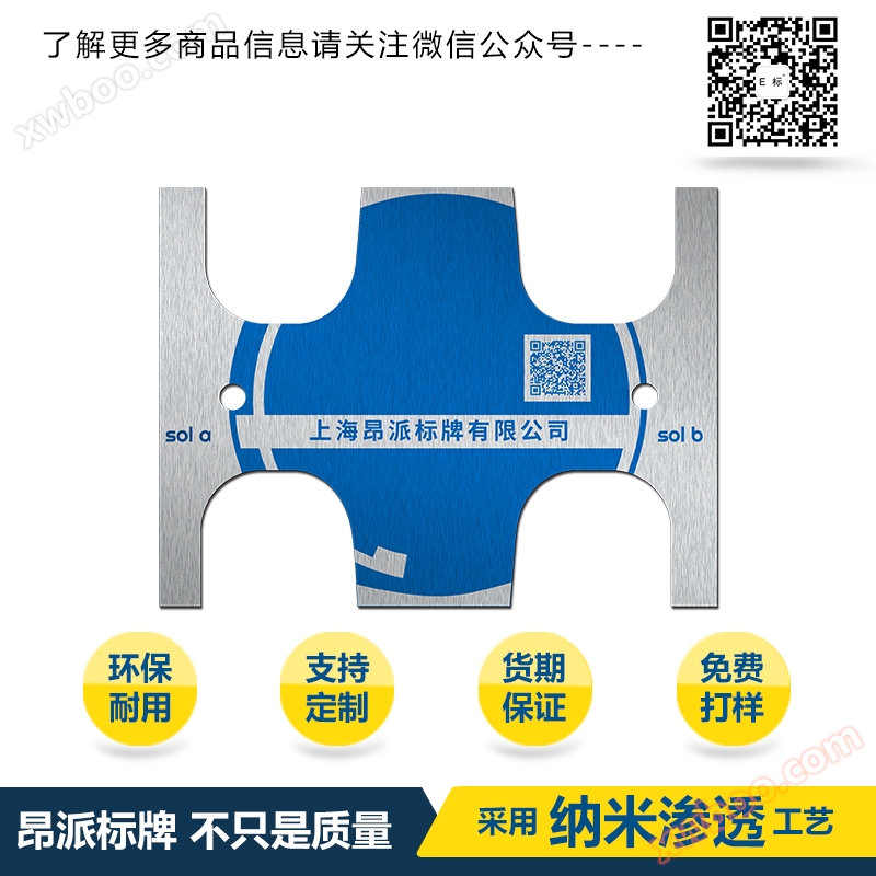 Značky, značky, hliníkové značky: odolnost vůči korozi není narušena magnetickým polem, dlouhá životnost. Bez ozónu, znečištění ovzduší a kyselých dešťů; Odolnost vůči ultrafialovému záření, odolnost vůči ultrafialovému záření